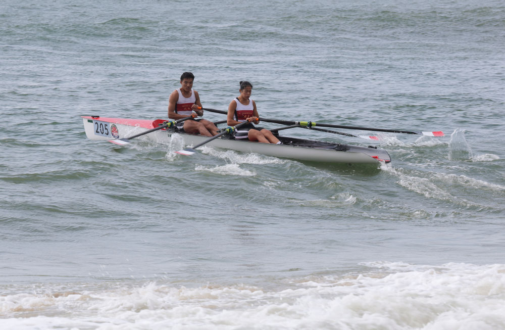 新华社阳江11月16日电(记者邓瑞轩)在16日举行的全运会滨海赛艇混双双桨决赛中,广东队王云飞/张桂平以1.6秒的微弱优势战胜福建队李志金/蒋英华,夺得本次冠军。这是海岸赛艇今年首次纳入全运会正式比赛项目,获得的首枚金牌。 11月16日,广东队组合王云飞(左)/张桂平比赛。新华社记者 李跑 与传统的平水赛艇不同,滨海赛艇通常在公海、海岸或河口进行,这对运动员有较高的操舵技术、适应能力和身体素质。同时,由于风、浪、潮等自然因素的影响,比赛环境更加多变、宜人。该项目还将在2028年洛杉矶奥运会上首次亮相。当天,阳江市海陵岛沿海赛艇比赛场地风雨不断,给各参赛队伍带来了一定的挑战。 “这个项目肯定会有风浪,我们之前就做过针对性训练,特别注重借浪这样的细节。”广东沿海赛艇队教练李家豪说道。最终,广东队王云飞/张桂平凭借扎实的表现和出色的冲刺,以2分37秒39获得冠军。福建队李志进/蒋英华仅落后1.6秒获得亚军;同样来自广东的米豪帅/王森以2分34秒00的成绩获得单索奖牌。 11月16日,冠军广东队组合王云飞(右四)/张桂平(右五)、亚军福建队组合李志金(左二)/蒋英华(左三)、季军广东组合与继承人教练在右边)仪式。新华社记者 李然 摄 “我就是觉得这几年靠不住大家的努力,我们每个人都敢于拼搏,坚持下去。”张桂平表示,未来他将瞄准更高的目标,希望有机会参加2028年洛杉矶奥运会。按照赛程安排,沿海赛艇单人双桨和女子单人双桨两枚金牌将于17日决出。
