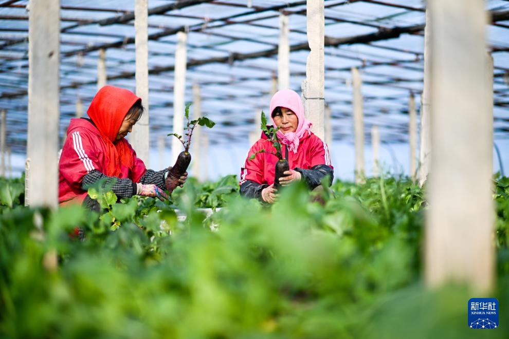 11月20日,天津市西青区辛口镇沙窝萝卜种植大棚内,农民正在采摘萝卜。今天,天津市西青区新口镇沙窝萝卜进入收获季节。当地农民有条不紊地进行采摘、包装、运输等工作。今年,全镇已种植沙窝萝卜约8100公顷,预计总产量达到7000万公斤,帮助村民致富增收。新华社记者 赵子硕 分页 11月20日,天津市西青区新口镇沙窝萝卜大棚内,农民在采摘萝卜。今天,天津市西青区新口镇沙窝萝卜进入收获季节。当地农民有条不紊地进行采摘、包装、运输等工作。今年全镇已种植沙窝萝卜约8100公顷,预计总产量达7000万斤帮助村民致富增收。新华社记者 赵子硕 分页 11月20日,天津市西青区新口镇,农民正在包装沙窝萝卜准备发运。今天,天津市西青区新口镇沙窝萝卜进入收获季节。当地农民有条不紊地进行采摘、包装、运输等工作。今年,全镇已种植沙窝萝卜约8100公顷,预计总产量达到7000万公斤,帮助村民致富增收。新华社记者 赵子硕 分页11月20日,在天津市西青区新口镇萝卜专业合作会上,农民通过直播推销沙窝萝卜。今天,天津市西青区新口镇沙窝萝卜进入收获季节。当地农民有条不紊地进行采摘、包装、运输等工作方式。今年,全镇已种植沙窝萝卜约8100公顷,预计总产量达到7000万公斤,帮助村民致富增收。新华社记者 赵子硕 摄
