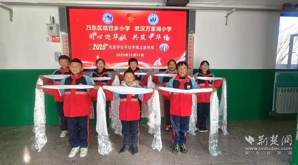 荆楚网(湖北日报网)讯(记者林珊通讯员熊敏、袁培勤、陈琪琪、曹占波)12月31日,武汉经济技术开发区万家湖小学校园里洋溢着热烈的欢迎气氛。学校与西藏自治区山南市乃东区结巴乡小学合作,开展了以“共迎元旦,筑中华情”为主题的系列假期课程。同地区的同学们通过书信、视频、云课堂、联欢会,共同迎接2026年的到来。